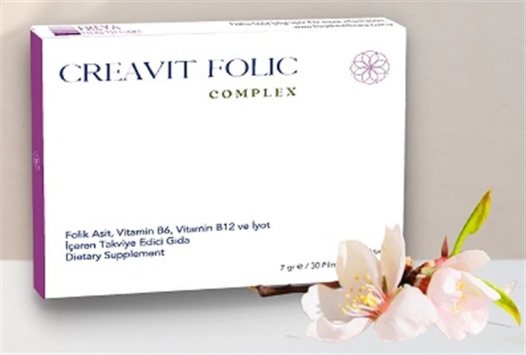 Supplement Containing CreaVit® Folic Complex, Folic Acid, Vitamin B6, Vitamin B12 and Iodine; To reduce the risk of NTD that may occur before and during pregnancy, In order to support vitamin B deficiency, For support in iodine deficiency, is used.